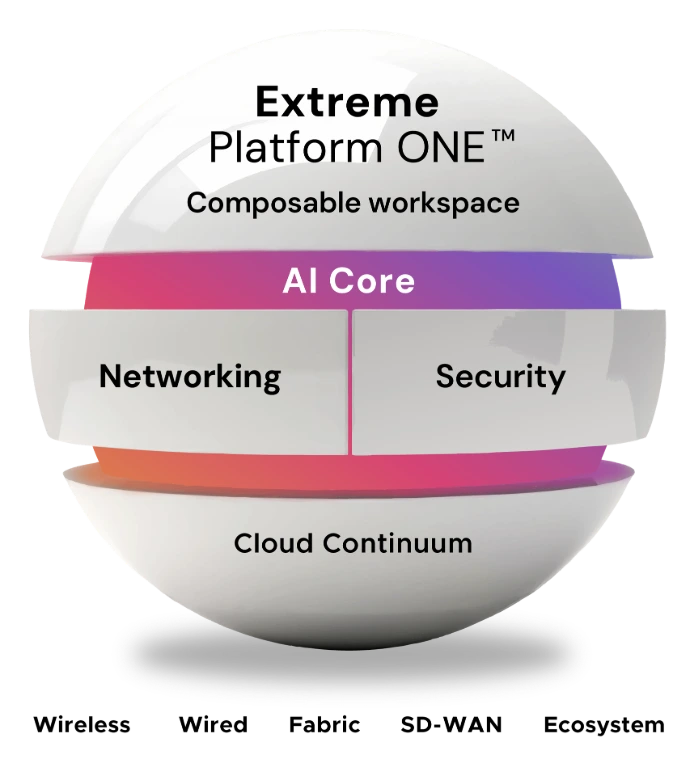 Extreme Platform ONE™ brings networking, security, and AI together in one seamless platform—designed to maximize efficiency, scale effortlessly, and spark innovation. By integrating advanced networking capabilities with robust security protocols and intelligent AI-driven automation, the platform simplifies complex IT operations, reduces downtime, and accelerates decision-making.